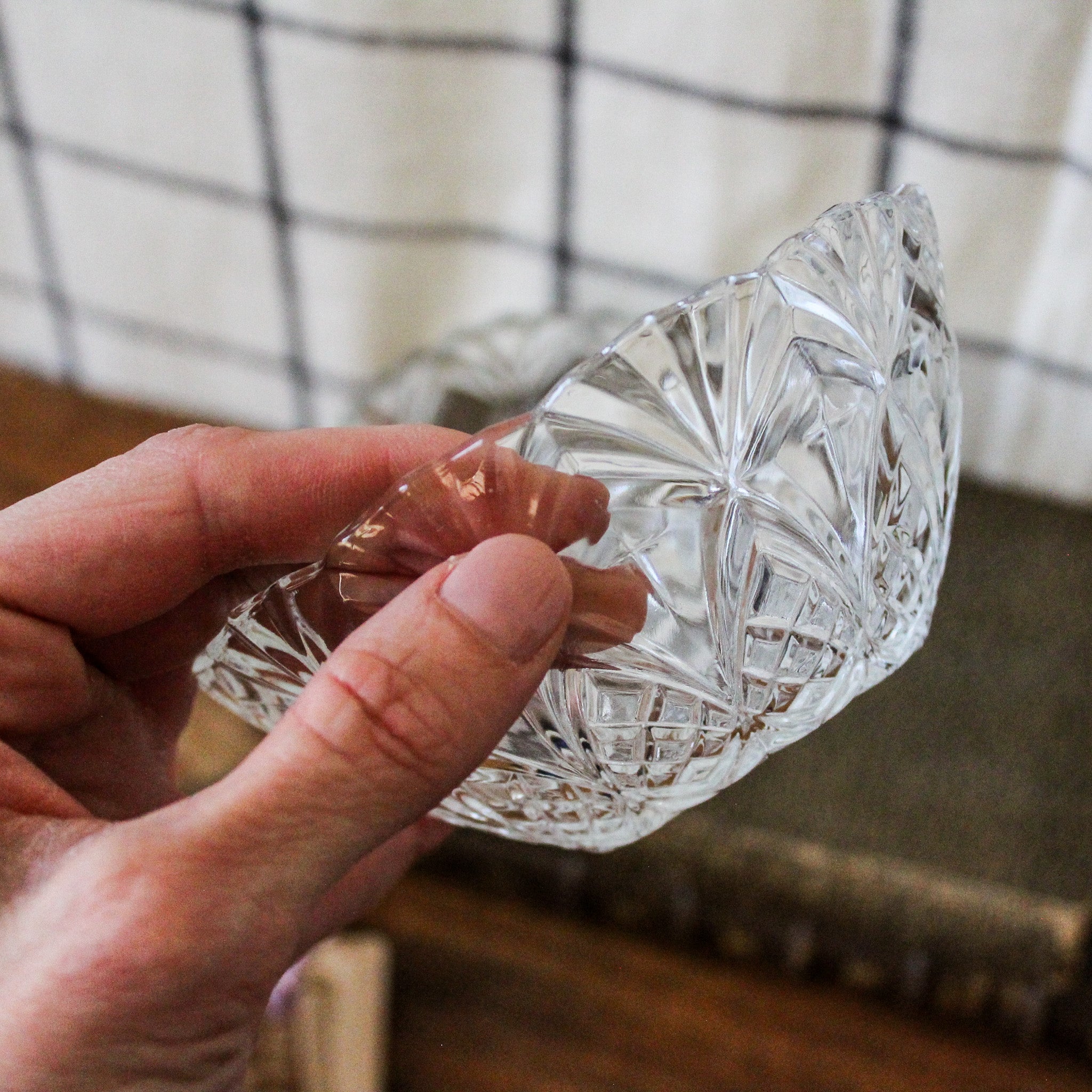Coupelles rondes vintage, en verre taillé transparent avec décor fin et délicat.