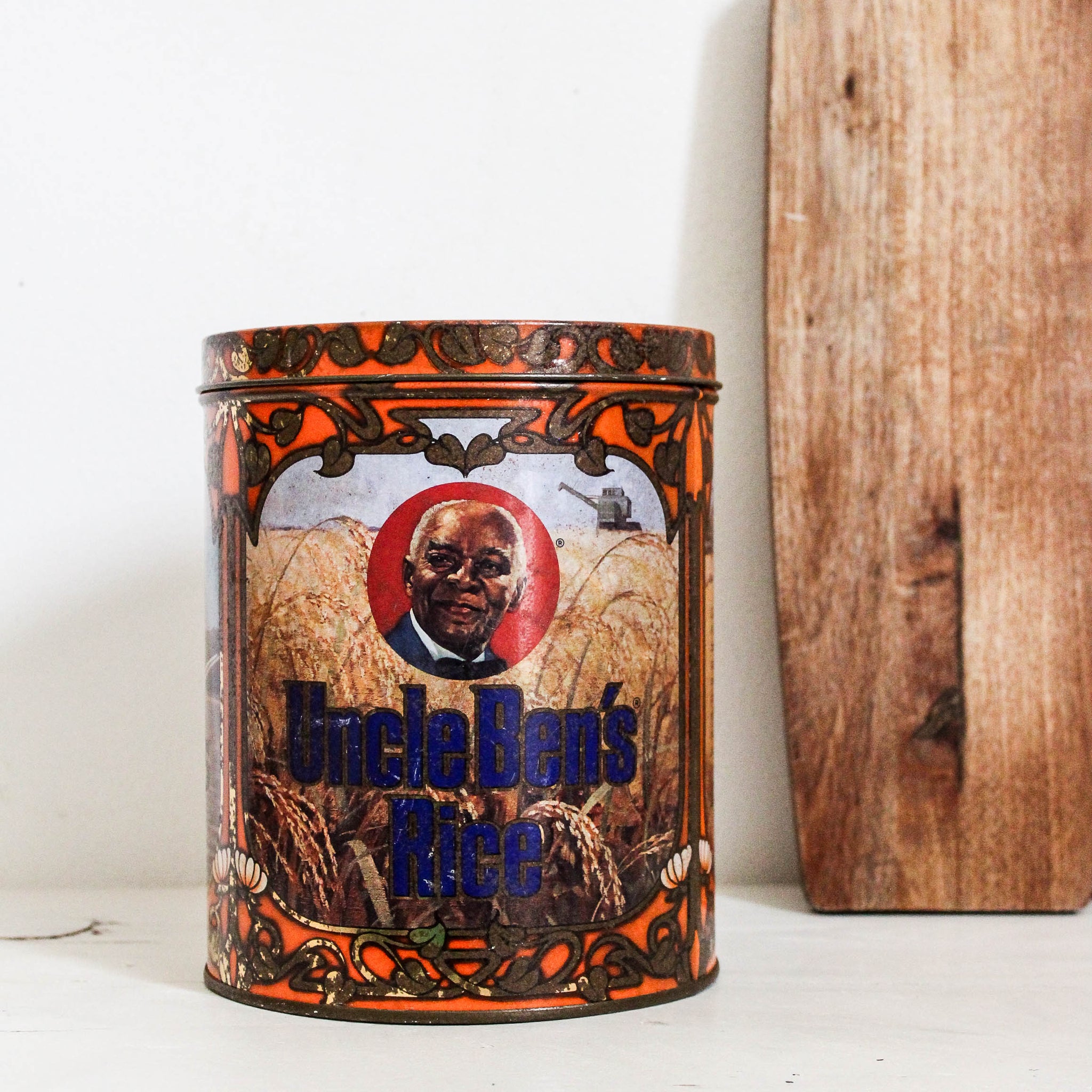 Large et jolie boîte ronde en métal alimentaire Uncle Ben's.