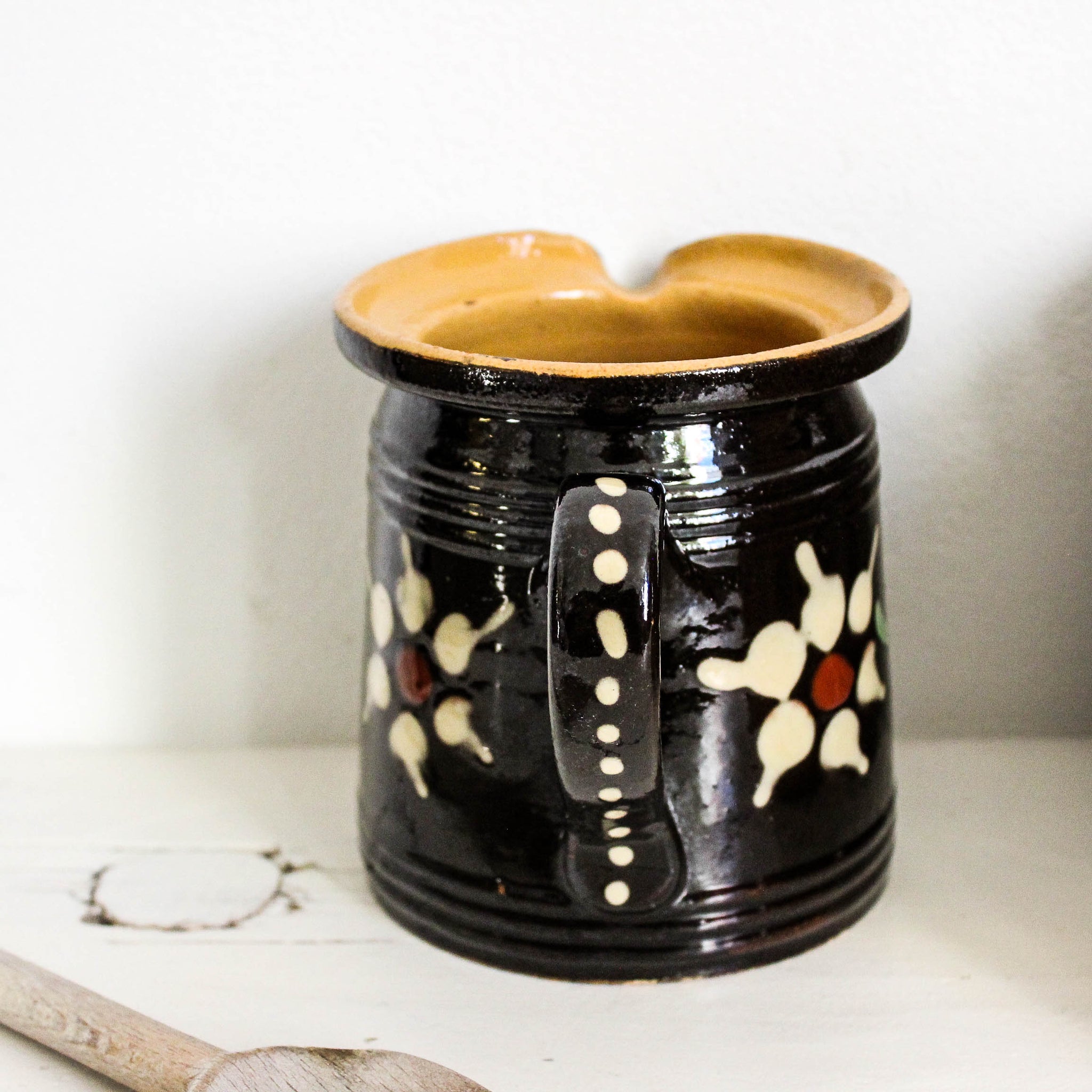 - Pichet alsacien, décor de fleurs blanches et feuillages verts, en parfait état - 13x12cm | 19€
