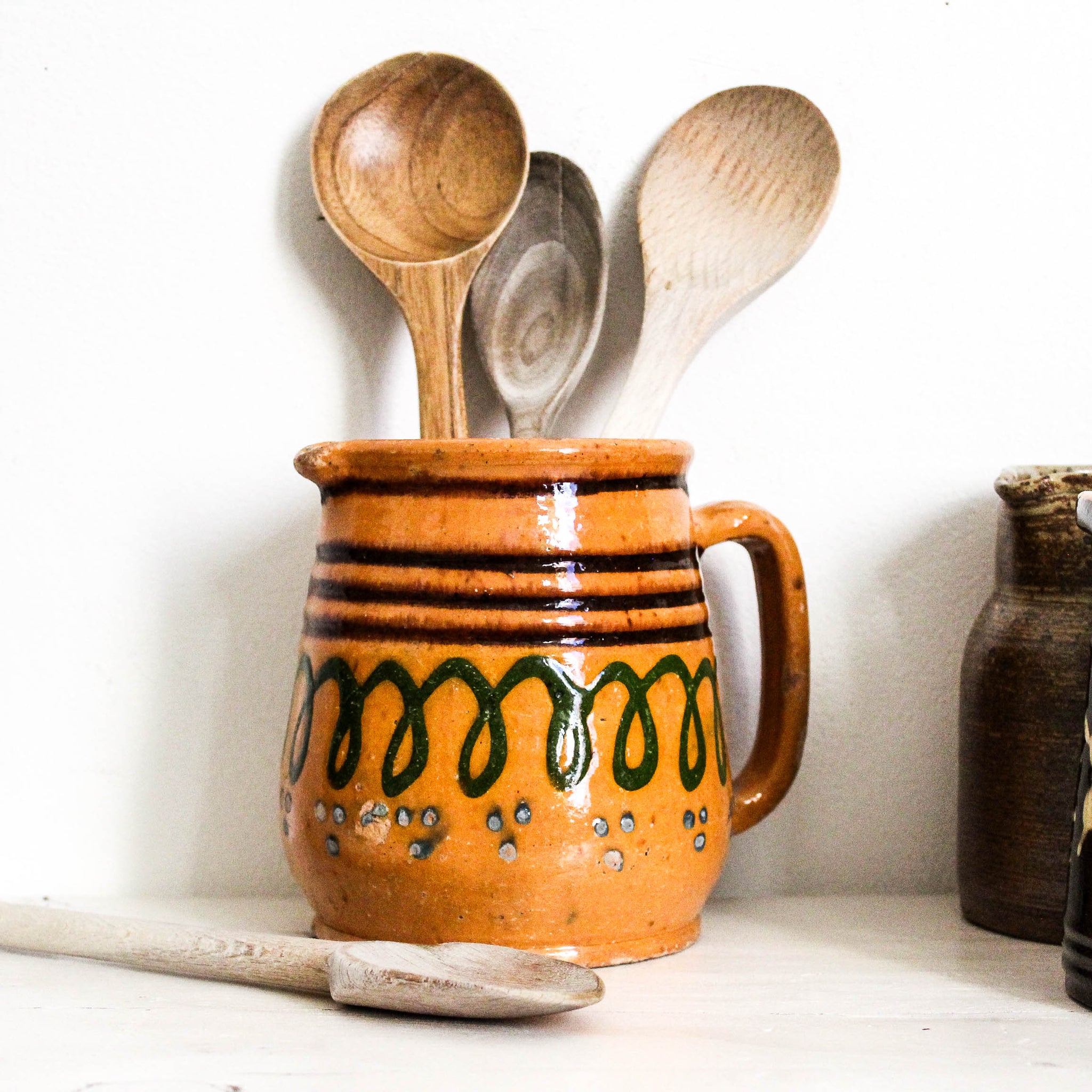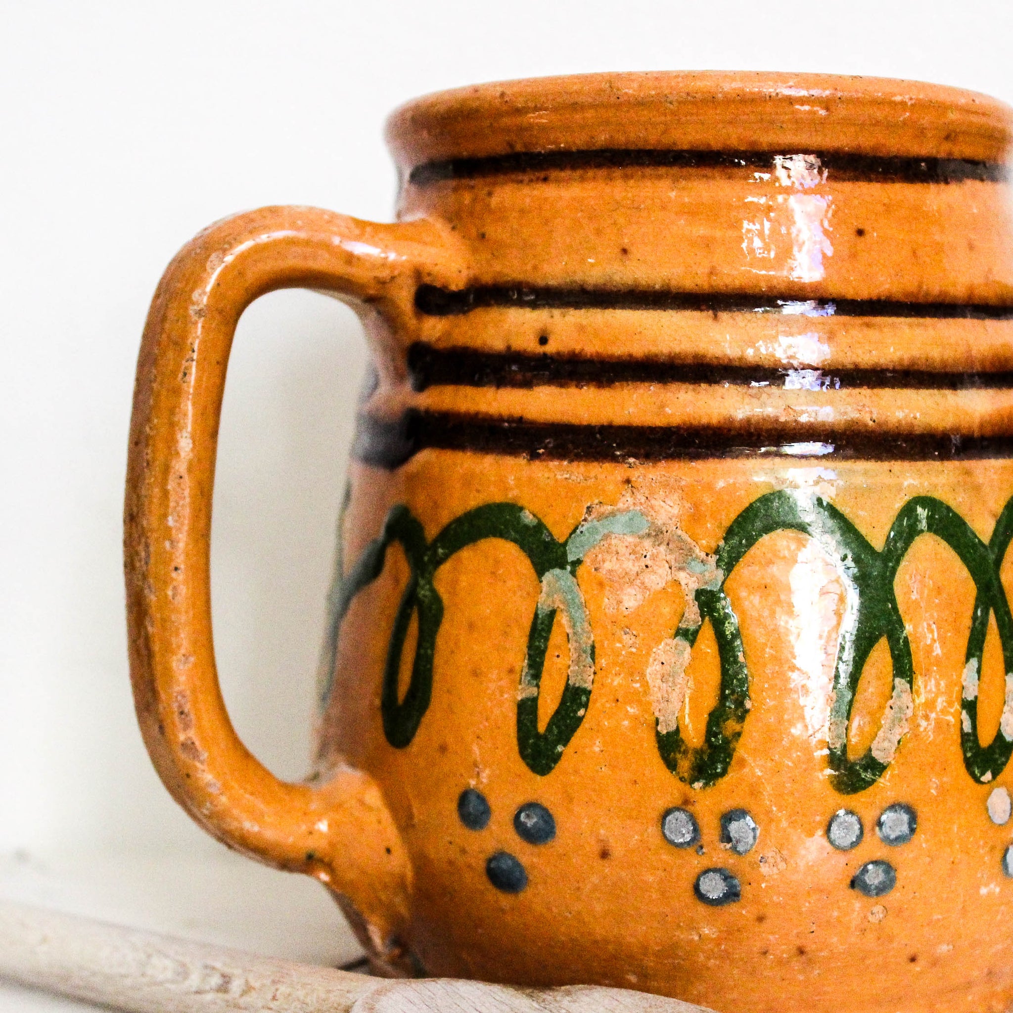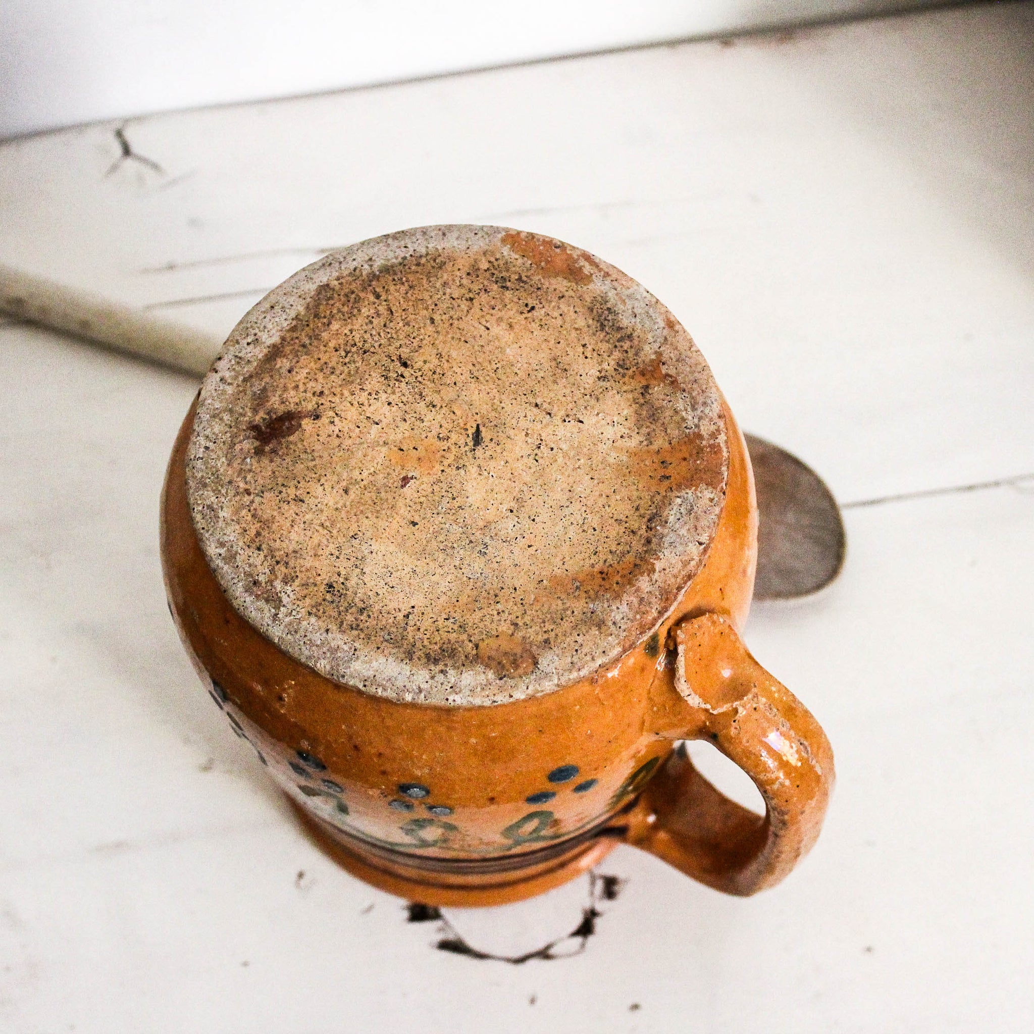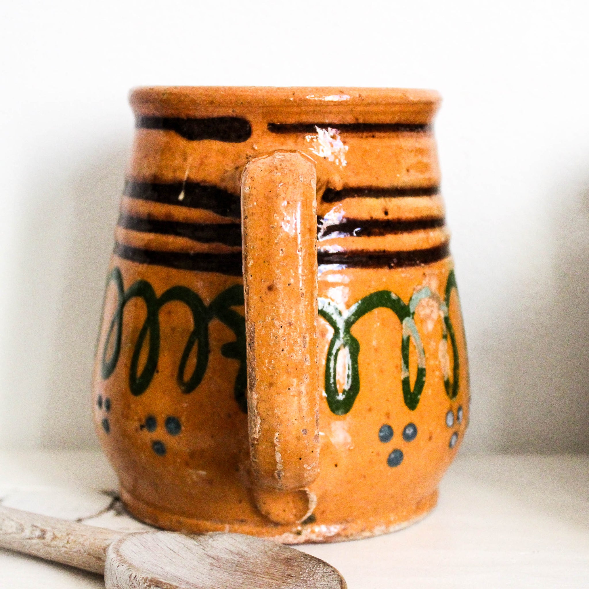 - Pichet coloré, tonalités orangées et décor vert. Belle patine ancienne et bel état global - 15x12cm | 22€